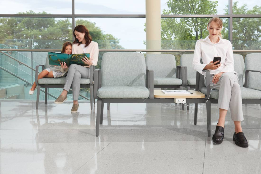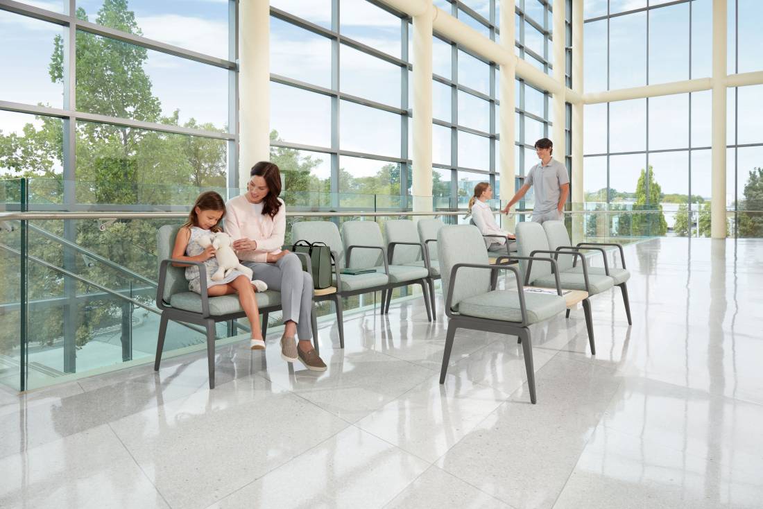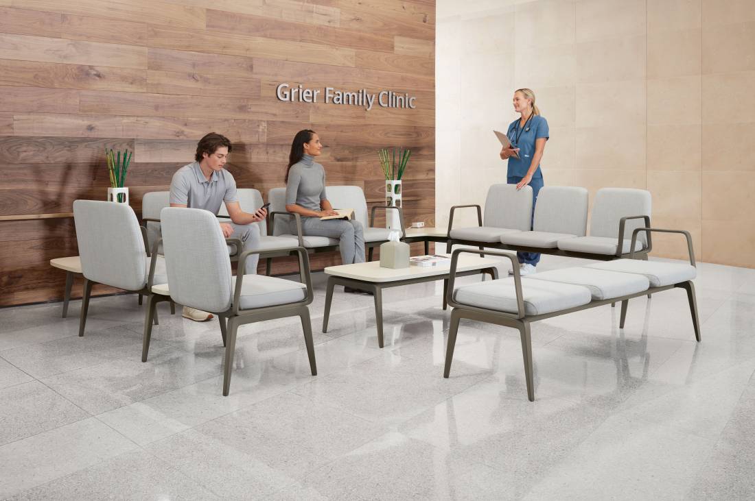 A complete solution of freestanding chairs, tables, interlocking configurations and specialty seating to meet a variety of healthcare needs.