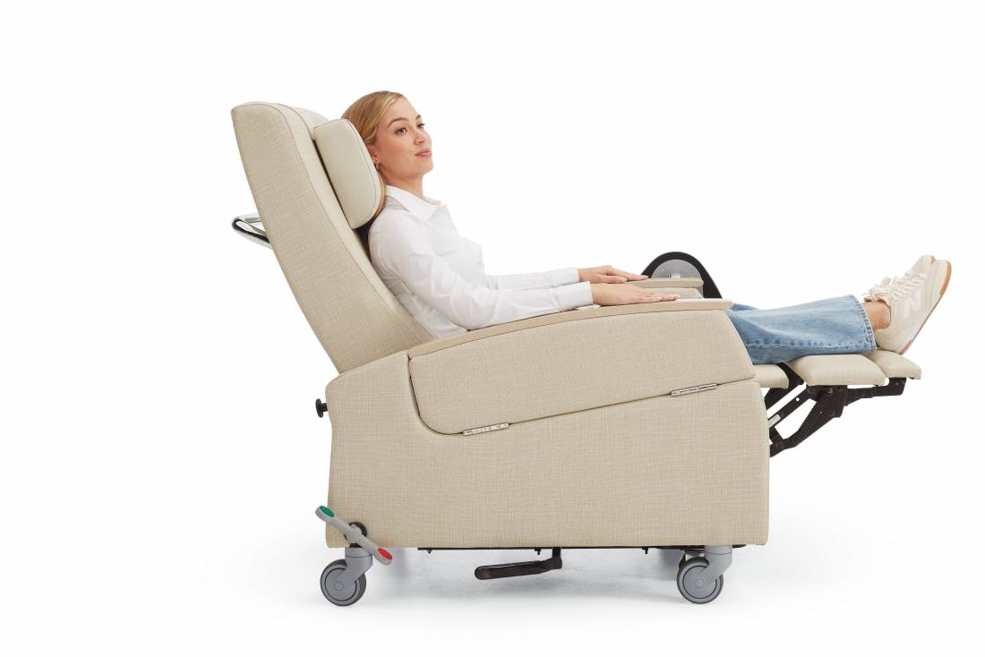 - Easy grip forward extending armcap on models with arms, to assist getting in and out of the chair safely.